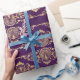Guld fredskockor och filigree på lila. Perfekt för borttagning av sidor, hantverk eller presentomslag. Kolla in svampen för att se till att den är godtagbar.