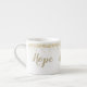 Denna espresso mugg visas i vitt med gyllene färgader petite-stjärnor som skär ned från kant översta med streck-accent överst och grund. Texten i finare roligt manuset "Hope". Anpassa det här objektet eller köp som designat.