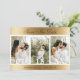 Bilden elegant guld bröllop sparar datumkortet med en multifotokollage på guld-bakgrunden.