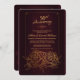 En elegant inbjudan i djup burgunder med handritade pioner i guld. (<a href='https://www.freepik.com/free-vector/hand-drawn-golden-floral-background_3652551.htm'>Designad av Freepik</a>). <br/><br/>Kortet är lätt att anpassa med din text, teckensnitt, teckensnittsfärg och val av sex papperssorter.<br/><br/>Inte exakt vad du söker? Alla våra produkter kan anpassas för att möta dina behov utan extra kostnad.<br/><br/>Kontakta oss bara på askcottonlamb@gmail.com<br/><br/>Koordinerande produkter tillgängliga: