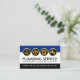 Ett blått, vitt och svart omslag accentueras av ett glansigt verktyg-monteringspekare för guld överst på kortet. Nära kortets centrum finns namn PLUMBING SERVICE tillsammans med en lista över möjliga tjänster som du kan byta ut. Den svarta rand vid basen rymmer dina mobila kontaktuppgifter. I ett vitt omslag finns en blå logotyp som du kan använda överst. Detta följs av er prestigefyllda namn, kontaktinformation och ett sloganalternativ för att publicera dina tjänster. En underbar utformning för rörmokare till använda. #plumber #plumber #plumbingservice #plumbingprovider #pipe #plumbingandsuppvärmning #homeplumbering #vattenpipe #pipefitter #faucet #professionalplumber #zazzlemade