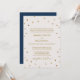 Det här formella vigselkortet i guld polka dots är perfekt för ett elegant bröllop. Den enkla designen har chic guld konetti på en krämig champagnebakgrund med vacker faux guld-folie-kalligrafi och en marin blå bakgrund. Obs! Den här designen har inte äkta guld-folie. Det är en grafik av hög kvalitet som framställs som guld-folie. Om du vill ha fler alternativ för bröllopsinbjudan kan du gå till hela samlingen guld polka dots bröllop: https://www.zazzle.com/collections/119263882092239442