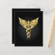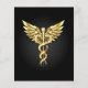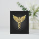 Guld polygonCaduceus-symboler på svart, isolerad bakgrund. Läkemedelssymbol med låg polyester.