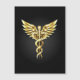Guld polygonCaduceus-symboler på svart, isolerad bakgrund. Läkemedelssymbol med låg polyester.