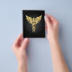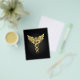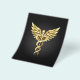 Guld polygonCaduceus-symboler på svart, isolerad bakgrund. Läkemedelssymbol med låg polyester.