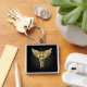 Guld Polygonal Symbol Caduceus Fyrkantig Silverfärgad Nyckelring