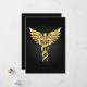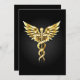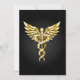 Guld polygonCaduceus-symboler på svart, isolerad bakgrund. Läkemedelssymbol med låg polyester.