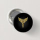 Guld polygonCaduceus-symboler på svart, isolerad bakgrund. Läkemedelssymbol med låg polyester.