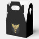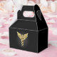 Guld polygonCaduceus-symboler på svart, isolerad bakgrund. Läkemedelssymbol med låg polyester.