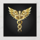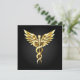 Guldpolygonala Caduceussymboler på svart isolerad bakgrund. Låg poly symbol för medicin.