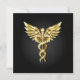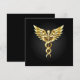 Guldpolygonala kaduceussymboler på svart isolerad bakgrund. Låg poly-symbol för medicin.