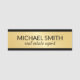Få ditt företag att se mer professionell ut med professionellen namn bricka. Namn bricka har namn i svart, modernt sans serif-teckensnitt stil och titel i svart, modernt skriptteckensnitt stil på guld-bakgrund. Perfekt för ett verkligt gods agent, konsult, revisor, chef, lärare och många andra yrken. Observera: Folidinformationen simuleras i teckningen. Ingen faktisk folie kommer att användas vid skapar av denna produkt.