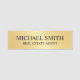 Få ditt företag att se mer professionell ut med professionellen namn bricka. Namn bricka har namn och rubrik i serieteckensnittet för svart professionell stil på guld-bakgrunden. Perfekt för ett verkligt gods agent, konsult, revisor, chef, lärare och många andra yrken. Observera: Folidinformationen simuleras i teckningen. Ingen faktisk folie kommer att användas vid skapar av denna produkt.