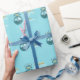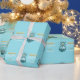 Älskvärd modern gåva som slår in papper med skriftlig god jul. Försilvra blått, turkos med den stora prydnaden med pilbågen. GLATT Fauxguld. Personifiera med namn. Imponera din vänner och familj med denna lyxiga gåva som slår in papper. (bakgrundsfärg kan ändras till någon färg),
