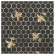Glitterbin i guld med krona och en bikaka i guld på en svart mask i trasa ansikte.