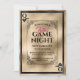 Den här inbjudan till Dam Game Nght-partiet har en klassisk spelkortsdesign på en glansig tittar guld-folie mönster. En ornat, vintage stil ram, omger mitttextområdet. En svart ram gräns. Två svarta hjärtan och drottningens monogram trycks i motstående hörn, liknande layouten i en kortlek. Ord "dam" skrivs ut i ett söt skriptteckensnitt ovanför titeln Spelnatt.