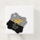 Partygavor eller gåvokort, med en tävlingshäst i falskt guldglitter på svarta och vita ränder högst upp och en enfärgat svart yta längst ned för din personliga anpassning. Ändra texten, ändra teckensnittet, ändra teckensnittsfärgen. MATCHANDE artiklar i vår butik.