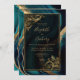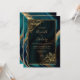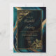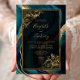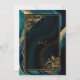 En elegant vattenfärgsblått och guld-färgagat ram ger inställningen för texten guld-färgad på en rektangulär mörk-styrd bakgrund som dekorerats med vintage guld blad-förnimmelser. Utformningen upprepas på baksidan av kortet med utrymme för parets monogram initialer.