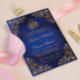 Guld Ram Ornate Blue Muslim Bröllop Inbjudningar