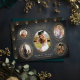 Fira student i stil med den här handgjorda fotoinbjudan. Ett centralt foto med bandets ram omges av fyra mindre bilder, som var och en är inramad med hjälp av botaniska detaljer. Chicens svarta bakgrund och faux guld ramar är sofistikerade, medan den omvända sidans elegant art deka mönster på svart ger en tidlös beröring. Anpassa med dina favoritstunder och starta ditt nya äventyr!