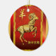 På denna älskvärda prydnad för det kinesiska nya året RAMs profileras huvud mot en bakgrund av glödande röda lyktor. För det kinesiska nya året 2015--året av ramma, geten eller fåren. Upptill är det kinesiska symbolet för "rammar.", Längst ner "är den skriftliga gott nytt år" i kinesiska tecken. De omvända särdragen olikt RAMs head design, med rum upptill för att dig ska tillfoga ett namn eller att datera.