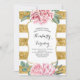 Rosa vattenfärgsblomma - peonin och guld glitter rand - elegant vintage vit inbjudningskort för möhippa