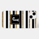 Modern iphone case i ett svart, vitt och guld glitter tittar utarmat mönster. En svart textram och guld, mitten i fodral, har ett enda brev-monogram vitt redo att anpassa sig efter.