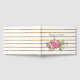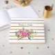 Chic bröllop gäst bok, som ligger i ett utseendet guld glitter och det vita vågrät rand mönster, med en vattenfärggrafik av en rosa bouquet. Anpassa namnen för bruden och brudgummen till din speciella dag.
