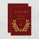 Vackrött med guld löv glitter accentuerar minimalistiskt och enkelt bröllop "spara datumet" chic och elegant. Faux guld. Enkel elegans..