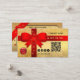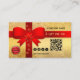 Ett julklappscertifikat för julklapp med ett rött band på en guld-vänd Helgdag. En platshållarbild för din logotyp och QR-kodmall läggs till för din bekvämlighet, liksom social-medieikoner. Du kan enkelt ersätta medieikonerna i social med ikoner för andra plattformar om du vill.