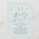 Guld-regndroppar snd manusdusch, babydusch, blått inbjudningar