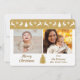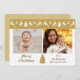 Två av dina favoritfoton från familjen går i centrum på det här platta julkortet, med en guld och vit renare och Helgdag gräns överst. Matchande guld-text vid grund ge vid hälsning och namnteckning i anpassningsbar fält, som separeras av en guld-silhuett Julgran. Kortets baksida är starkt ljusare guld.