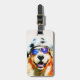 Denna bagagemärkre presenterar ett vibrerande vattenfärgporträtt av en le guld- retrieverhund, som ha på sig sebra-görad randig solglasögon och en hatt.