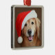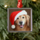 Tillfoga en lite guld- retriever som julen hurrar till ditt helgdagträd detta år! Denna prydnad presenterar en fotografera av en le guld- retrieverhund som ha på sig en röd Santa hatt.