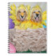 Denna anteckningsbok presenterar guld- retrievers som kläs som chickar i en jätte, bygga bo.