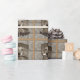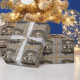 Detta slående in papper presenterar en guld- retriever som kläs som ett cowboyinnehav ett vapen.