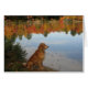 Guld- retrieverhundlooks ut över sjön som omges av nedgånghöst löv. Reflexionen av nedgånglövverket ger en älskvärd inställning för denna härliga hund. Det inre hälsningmeddelandet kan skräddarsy av dig.