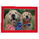 Lycklig 4th Juli, USA! Visa att din patriotiska ande med denna gulliga guld- retrievergåva hänger lös! Designen presenterar en fotografera av två hundar som firar independence day med rött, vit och blåttflugor.