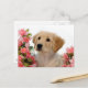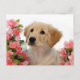 Ett förtjusande foto från våra SNAPshotz fotokort fodrar och att presentera en söt guld- Retrievervalp som sitter med några rosa blommor