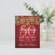 Elegant "50-årsfest" design med Guld Faux Glitter Snöflingor & bokeh lysande ljus på Röd bakgrund (du kan ändra bakgrundsfärgen efter dina behov), och anpassat namn + detaljerad text. Lätt att använda och lätt att anpassa. Beställ Idag!