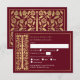 Fira din speciella dag med dessa kungliga medeltida svärd bröllop RSVP-kort mot en röd bakgrund. Du kan anpassa detta ytterligare genom att klicka på "PERSONALISERA"-knappen. OBS: Guldet på denna artikel är INTE riktigt folie och är tryckt i platta färger