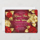 Romantisk och modern blomsterbröllopsinbjudan med svarta, gyllene och röda rosor - klassiska färger som aldrig går ur stil. Gyllene blommor.