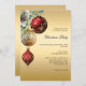 Elegant Business julfest Bjuder Inbjudan din grupp att fira julhelgen med den här snyggten och den moderna julfestinbjudan. Med en elegant faux guld tittar bakgrund dekoreras designen på ett vackert sätt med festive Red och guld baubles, greenery och en gräs-kon för en klassisk beröring. Anpassa den med företagets händelseinformation för att skapa en professionell och en sofistikerad inbjudan, perfekt för din helgdag.