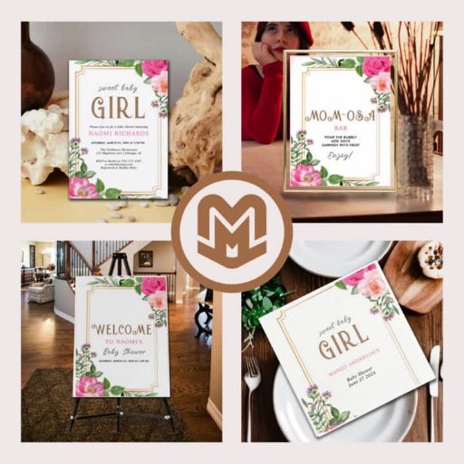 Gold Pink Floral Girl Baby Shower FrameDesignad av Max Marshall