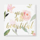 Guld Rosa Blommigt Vattenfärg Du är vacker Magnet