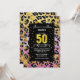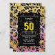 Guld rosa svartleopardavtrycksdjungel glitter 50:e inbjudningar