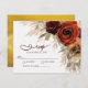 På detta bröllop OSA finns rosenolja som är målad med burgundisk, jordtnig höstblomma över grönt och pampasgräs med en elegant guld blad bakgrund.