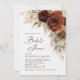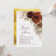 I inbjudningskort för möhippan finns rustisk olja som är målad burgundisk, jordad, tonad höstblomma över grönt och pampasgräs med en elegant guld blad bakgrund.