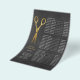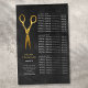 En stilren produkt/tjänst-meny med chic guld sax på en kritbord bakgrund. En elegant och professionell design som ger en trygg och professionell image. Designad av Thisisnotme©