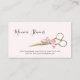 Ett giglistigt affärskort med ett par guld hårskärande saxar mot blekens rosa bakgrund. Anpassa genom att lägga till ditt namn, kontakta informationen på baksidan.